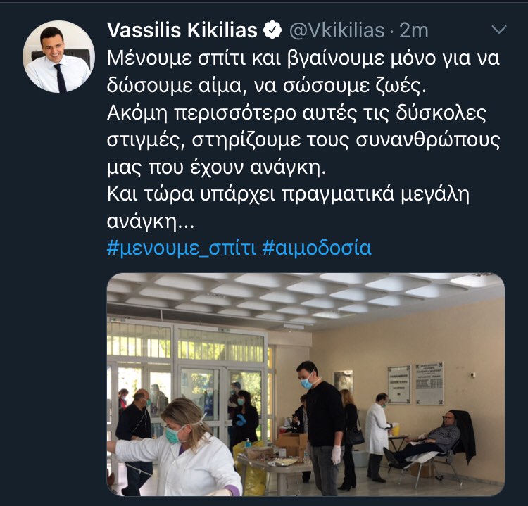Κορωνοϊος – Κικίλιας: «Μείνετε σπίτι! – Δώστε αίμα! – Μην μετακινείστε στα εξοχικά σας»