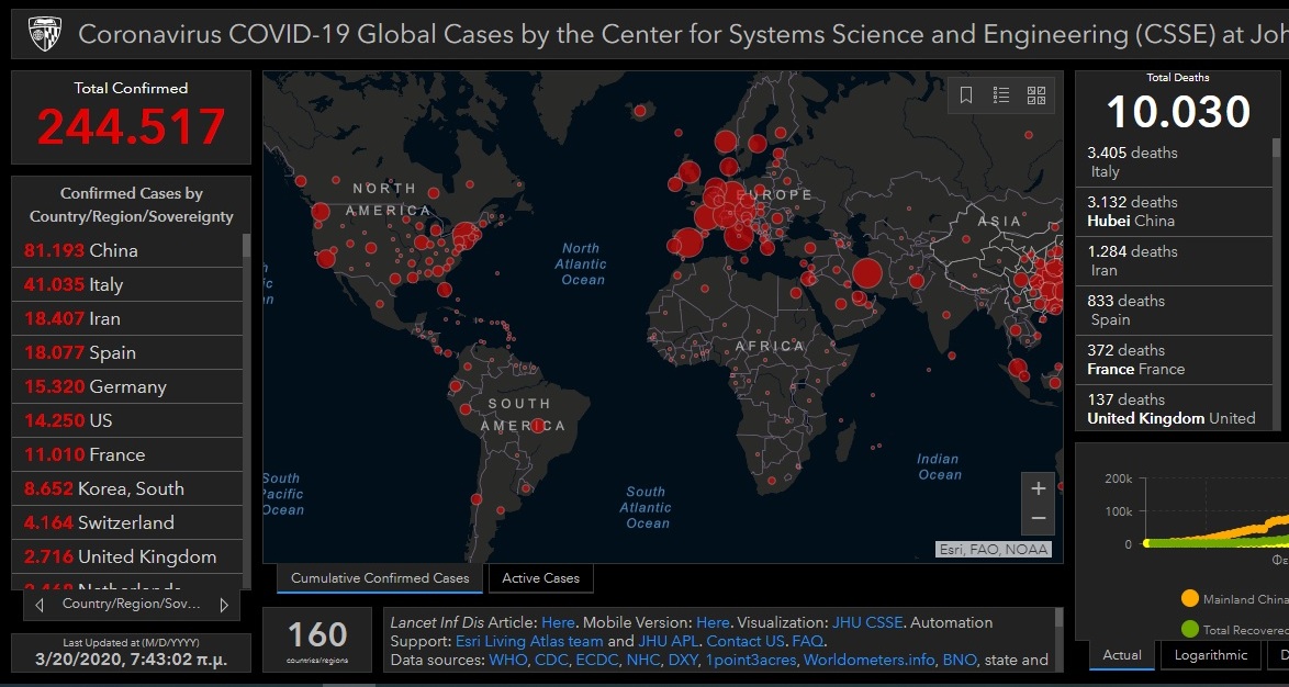Στην πραγματικότητα, το Παρατηρητήριο αναφέρει ότι αυτή τη στιγμή τα παγκόσμια κρούσματα είναι 244.517. Οι θάνατοι ανέρχονται σε 10.030.