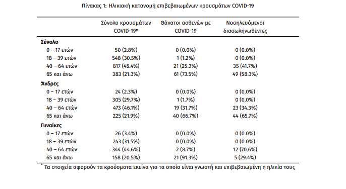 Η ηλικιακή κατανομή των (α) συνολικών κρουσμάτων, (β) των περιστατικών που κατέληξαν σε θάνατο και (γ) των ασθενών που νοσηλεύονται διασωληνωμένοι, είναι η ακόλουθη: