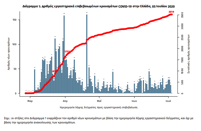Ο συνολικός αριθμός των κρουσμάτων ανέρχεται σε 3519 (ημερήσια μεταβολή +0.3%), εκ των οποίων 54.8% άνδρες.