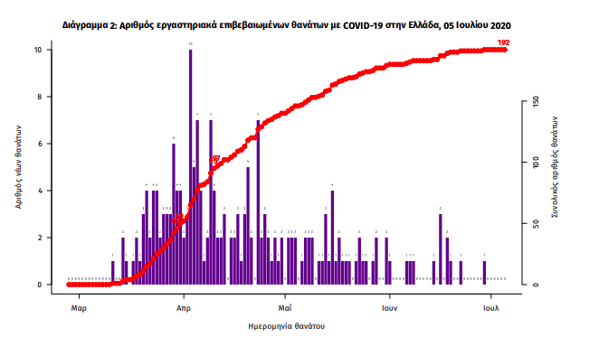 Δεν έχει καταγραφεί κανένας νέος θάνατος ασθενούς με COVID-19, ενώ από την έναρξη της επιδημίας έχουν καταγραφεί συνολικά 192 θάνατοι. Η μέση ηλικία των ασθενών που απεβίωσαν είναι 76 έτη.
