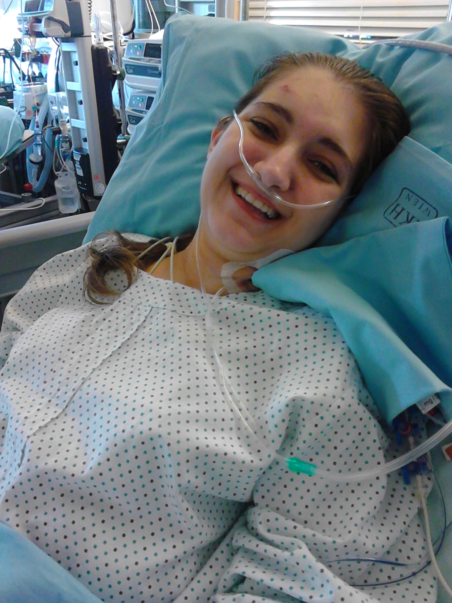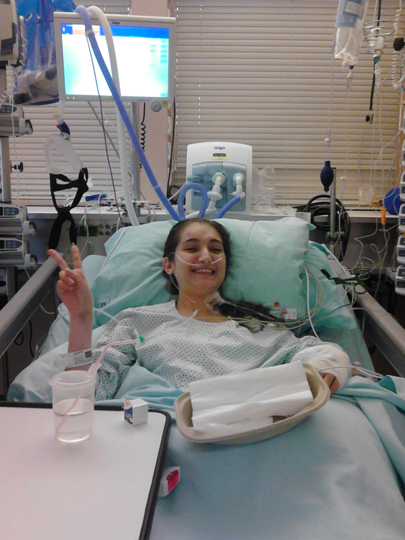 Ως που σε κάποια φάση, 9 μήνες πριν, οι πνεύμονες μου με εγκατέλειψαν τελείως και με έβαλαν σε κώμα. Ξύπνησα έναν μήνα μετά, συνδεδεμένη με άπειρα καλώδια και σωλήνες για να παραμείνω ζωντανή, παράλυτη, χωρίς φωνή και χωρίς να μπορώ να κάνω τίποτα στην ουσία – και η μόνη λύση ήταν η μεταμόσχευση.