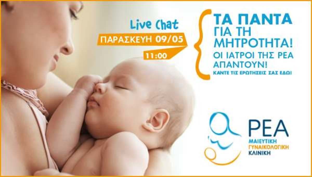 Με αφορμή τη γιορτή της μητέρας, οι γιατροί της Κλινικής ΡΕΑ κ. Τζεφεράκος Αλέξανδρος, Μαιευτήρας Γυναικολόγος & Διευθύνων Σύμβουλος της Κλινικής, ο κ. Αποστολακόπουλος Παναγιώτης, Ιατρός Βιοπαθολόγος & Διευθυντής του Τμήματος των Κεντρικών Εργαστηρίων της Κλινικής και η κα Χαρίτου Αντωνία, Παιδίατρος – Νεογνολόγος & Συντονίστρια Διευθύντρια της ΜΕΝΝ, θα βρίσκονται ζωντανά στο studio του Iatropedia.gr προκειμένου να μάθετε τα πάντα για τον προγεννητικό έλεγχο, τα στάδια της κύησης, τη διαδικασία του τοκετού αλλά και να προετοιμαστείτε ψυχολογικά και σωματικά για την άφιξη του νέου μέλους της οικογένειας!