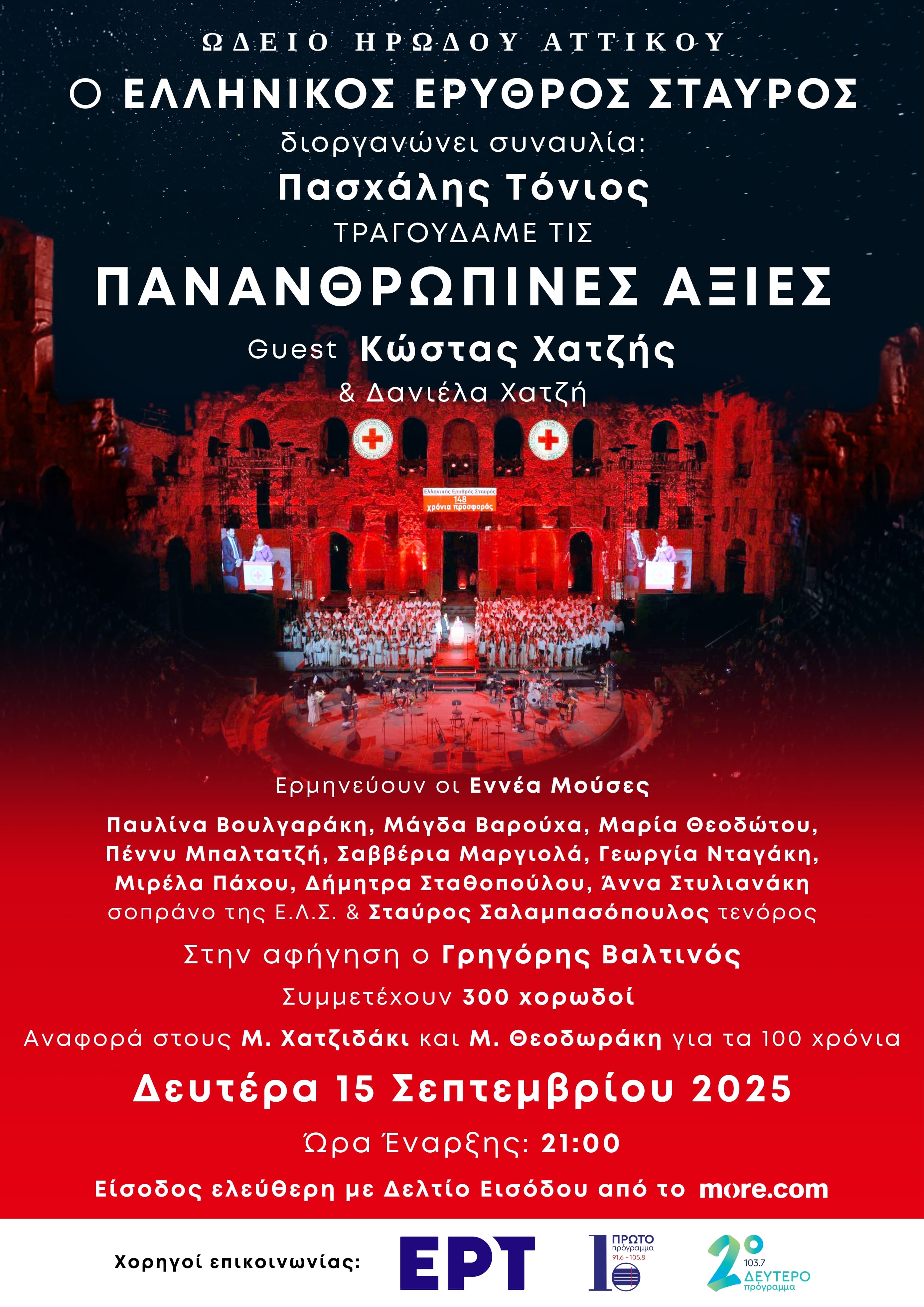 Σημειώνεται ότι στην μεγάλη συναυλία του Ελληνικού Ερυθρού Σταυρού θα λάβουν μέρος 300 χορωδοί.