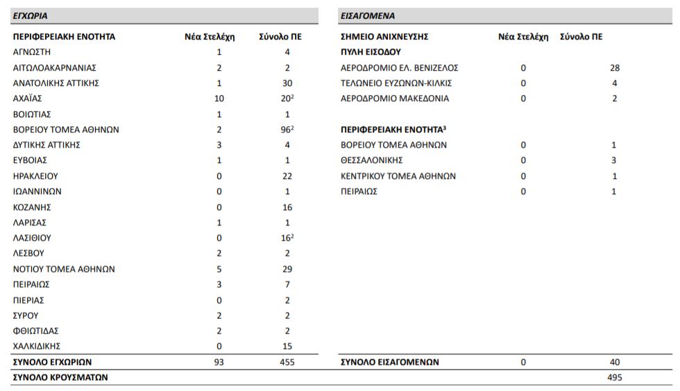 Δείτε αναλυτικό πίνακα με όλα τα κρούσματα ανά Περιφερειακή Ενότητα: