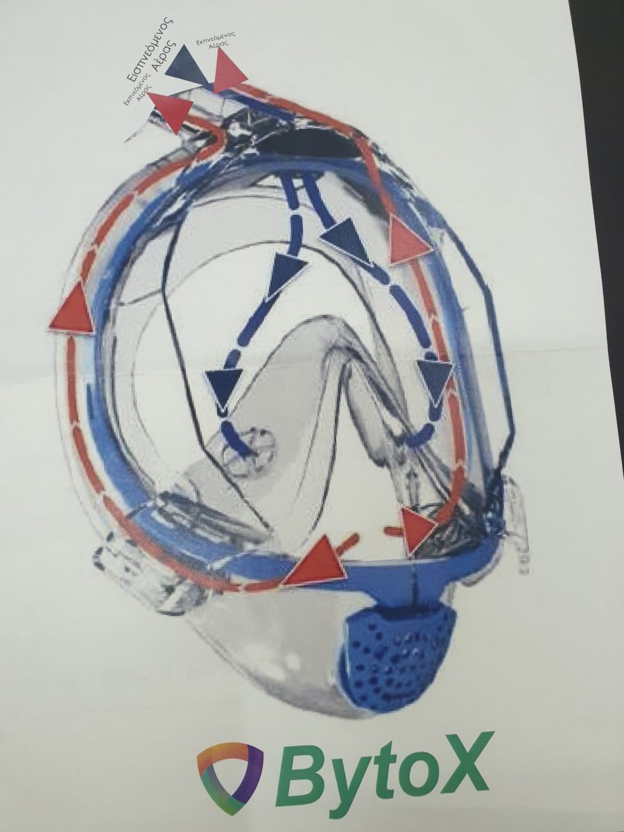 Η συσκευή αποτελείται από μια ολοπρόσωπη μάσκα (τύπου snorkeling), με φιλικό προς το δέρμα υλικό ιατρικής σιλικόνης. Η ποιότητα και καθαρότητα του εισπνεόμενου και εκπνεόμενου αέρα ελέγχεται από κύκλωμα φιλτραρίσματος ενεργού άνθρακα και αποστείρωσης μέσω κατάλληλης υπεριώδους ακτινοβολίας. Επίσης ρυθμίζεται η ποσότητα του εισπνεόμενου αέρα μέσω ελέγχου της ταχύτητας ροής. Η αποστείρωση είναι διπλή μέσω ανεξαρτήτων οδεύσεων, τόσο για τον εισπνεόμενο αέρα, όσο και για τον εκπνεόμενο.