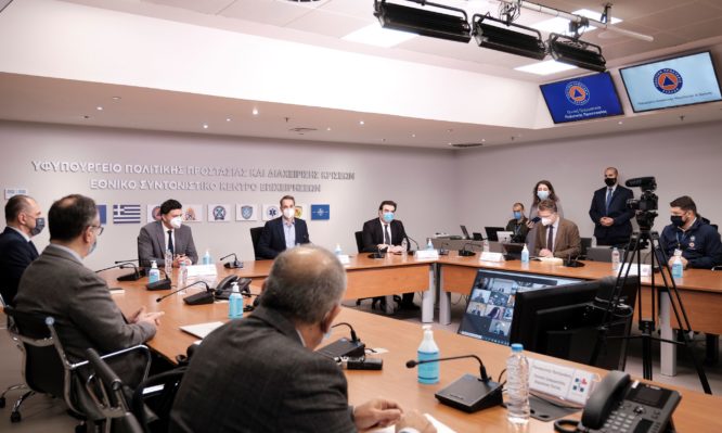 Χαίρομαι που μου δίνεται σήμερα η δυνατότητα να επισκεφθώ το Επιχειρησιακό Κέντρο της Πολιτικής Προστασίας, στο οποίο και θα λειτουργεί εφεξής μία μεγάλη ομάδα από τα Υπουργεία Υγείας, Ψηφιακής Πολιτικής και Προστασίας του Πολίτη, η οποία θα αναλάβει το περίπλοκο, αλλά και εξαιρετικά σημαντικό εγχείρημα της διαδικασίας του εμβολιασμού έτσι ώστε να θωρακιστούν το συντομότερο δυνατόν όσο το δυνατόν περισσότεροι συμπολίτες μας, έτσι ώστε το εμβόλιο να γίνει πραγματικά η αρχή του τέλους της πανδημίας. Όπως γνωρίζετε καλά, απέναντι στις μεγάλες δυσκολίες αντιτάσσουμε ένα επεξεργασμένο πρόγραμμα.