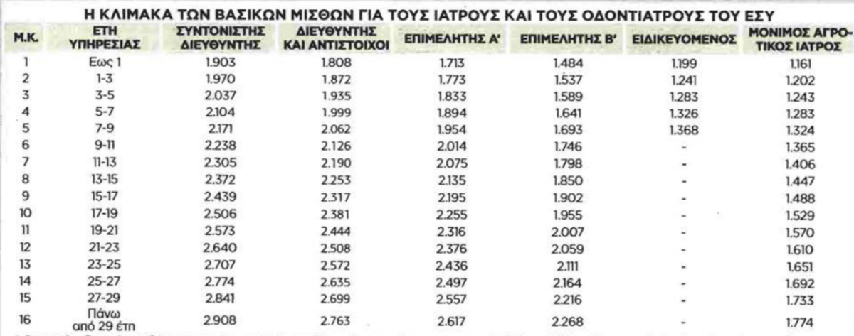 Παρακάτω δείτε τους νέους μισθούς των γιατρών του ΕΣΥ: