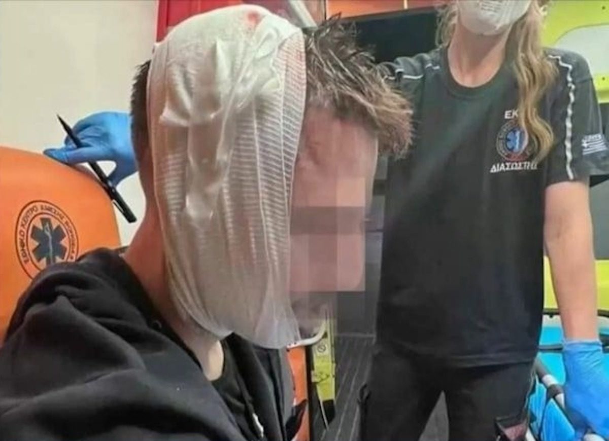 Η φωτογραφία ενός άνδρα να δέχεται τις πρώτες βοήθειες είναι σοκαριστική. Οι νοσηλευτές έχουν τυλίξει το πρόσωπό του με επιδέσμους, ενώ φαίνεται να αιμορραγεί.