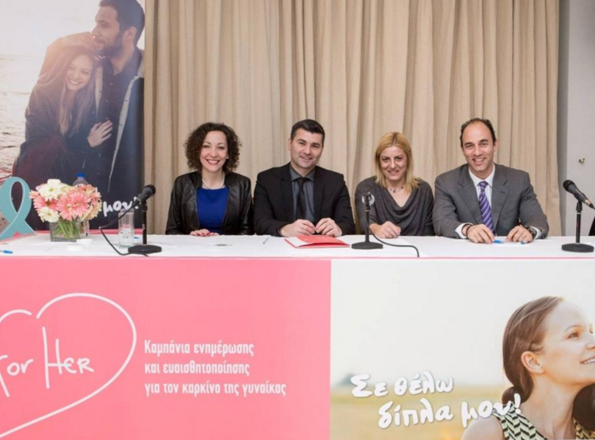 Οι εκπρόσωποι της Roche Θανάσης Ακάλεστος και Ξένια Καπόρη, ανέφεραν για τους στόχους της καμπάνιας «For Her», η οποία αποτελεί την πρώτη ολιστική καμπάνια ενημέρωσης κοινού στην Ελλάδα για τον καρκίνο της γυναίκας, με μηνύματα και δράσεις που απευθύνονται σε όλους – γιατί όλοι έχουμε μία πολύτιμη γυναίκα στη ζωή μας.