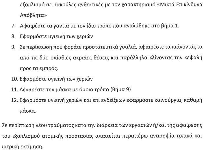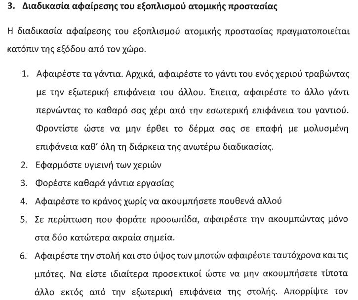 5. Αφαίρεση του εξοπλισμού ατομικής προστασίας