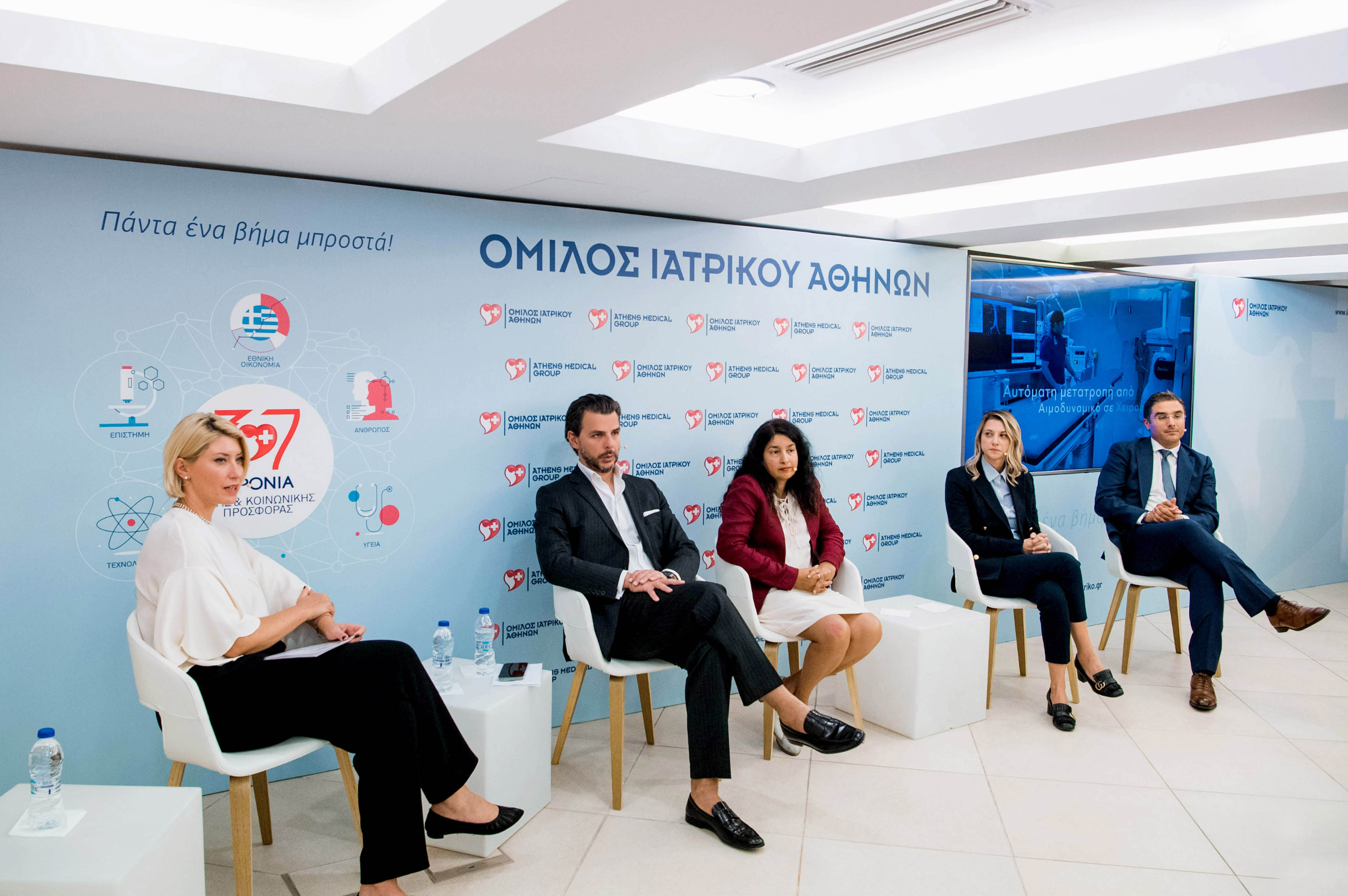 Από αριστερά προς τα δεξιά: κα Σία Κοσιώνη, δημοσιογράφος, Δρ. Βασίλης Αποστολόπουλος, Διευθύνων Σύμβουλος Ομίλου Ιατρικού Αθηνών, κα Cecilia Felix, General Manager, Image Guided Therapies, EMEA, GE Healthcare, κ Δρ. Γιούλη Αργυρακοπούλου, Ειδικός Παθολόγος, Διευθύντρια Γ΄ Διαβητολογικής Μονάδας, Μονάδας Παχυσαρκίας & Ιατρείου Διαβητικών Εγκύων, Ιατρικό Κέντρο Αθηνών, Δρ. Θεοδόσιος Μπίσδας, Διευθυντής Γ΄ Αγγειοχειρουργικής Κλινικής, Ιατρικό Κέντρο Αθηνών.