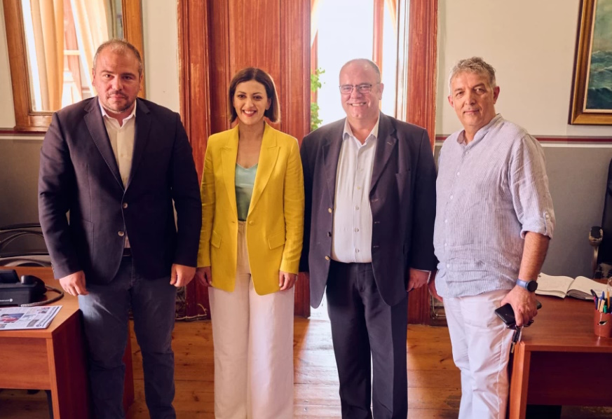 Ακολούθως, επισκέφθηκε το Δημαρχείο, όπου συναντήθηκε με τον δήμαρχο, Αλέξη Αθανασίου. Εν συνεχεία, μετέβη διαδοχικά στο Γενικό Νοσοκομείο Σύρου «Βαρδάκειο & Πρώιο» και στο Κέντρο Υγείας στην Ερμούπολη, όπου είχε μια εφ΄ όλης της ύλης συζήτηση με τον διοικητή, Νικόλαο Ρούσα, το Διοικητικό συμβούλιο, τους διευθυντές του Χειρουργικού και Παθολογικού Τομέα καθώς και το προσωπικό.