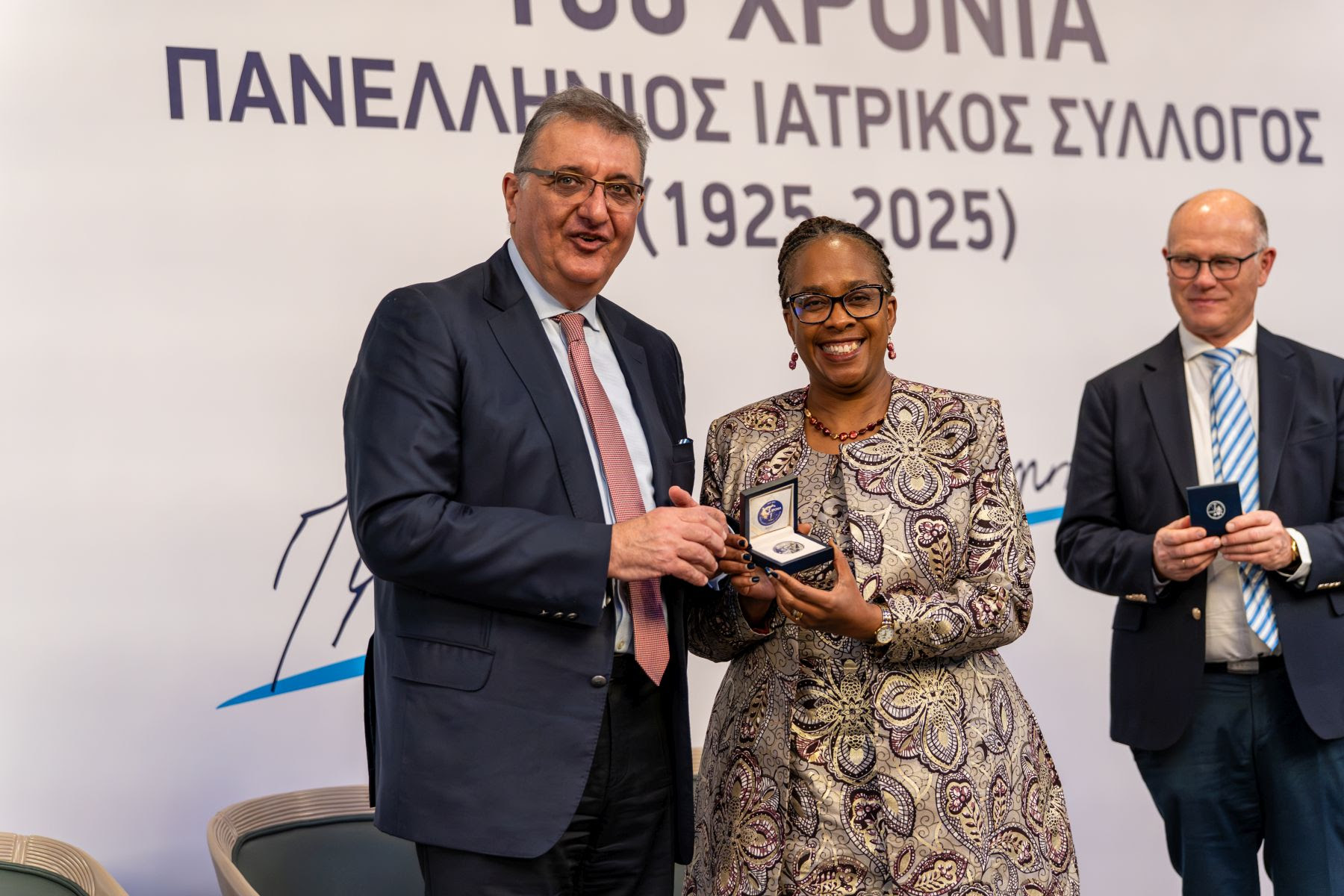 Κατά την εκδήλωση δόθηκαν επίσης αναμνηστικά νομίσματα που ο ΠΙΣ δημιούργησε στο πλαίσιο των εορτασμών σε συνεργασία με το Εθνικό Νομισματοκοπείο, αλλά κι ο τόμος με τίτλο «Έλληνες γιατροί στην Πολιτική 1828-2025» που συνέγραψε ο Δρ Θεόδωρος Δαρδαβέσης, ομότιμος καθηγητής Υγιεινής και Κοινωνικής Ιατρικής ΑΠΘ.