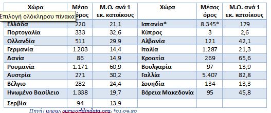 Δείτε τον πίνακα με το πως διαμορφώνονται τα ημερήσια κρούσματα σε άλλες χώρες της Ευρώπης: