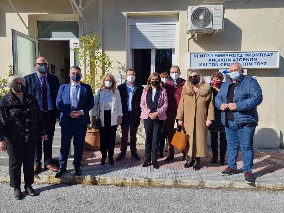 Επίσης, η Υφυπουργός Υγείας επισκέφθηκε το Κέντρο Ημέρας «4 ΕΠΟΧΕΣ», τον Ξενώνα «Θάλεια», το Κέντρο Ημέρας «ΣΠΙΤΙ ΜΟΥΣΩΝ» και το Κέντρο Ψυχικής Υγείας και είχε συνομιλία με τη Διοίκηση του Σωματείου Εργαζομένων του Ψυχιατρικού Τομέα.