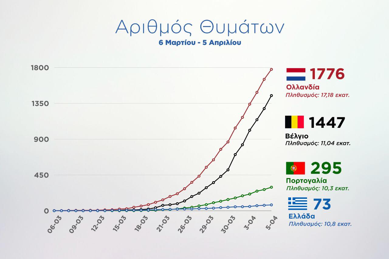 «Η επιτυχία του σχεδίου μας, μέχρι σήμερα, απεικονίζεται στα διαγράμματα των κρουσμάτων και -δυστυχώς- και των θυμάτων, ιδίως σε σύγκριση με άλλες αναπτυγμένες ευρωπαϊκές χώρες αντίστοιχου πληθυσμού».