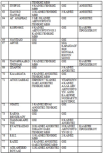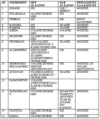 Εν όψει της γρίπης αυτή είναι τραγική κατάσταση σε διαθέσιμες κλίνες ΜΕΘ ανά Νοσοκομείο σε όλη τη χώρα, σύμφωνα με πίνακες που δίνει στη δημοσιότητα η ΠΟΕΔΗΝ: