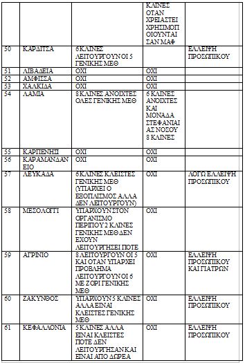 - Στα Επτάνησα λειτουργεί μόνο η ΜΕΘ του Νοσοκομείου Κέρκυρας με 5 κλίνες. 16 κλίνες εξοπλισμένες είναι κλειστές (6 Λευκάδα, 5 Κεφαλονιά, 5 Ζάκυνθος).