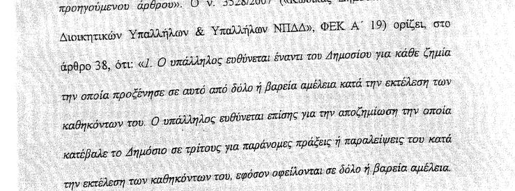 «Ο Γενικός Επίτροπος Επικρατείας του Ελεγκτικού Συνεδρίου αιτείται από το IV τμήματος του Ελεγκτικού Συνεδρίου τον καταλογισμό 850.666,66ευρώ σε γιατρό ΩΡΛ του Γενικού Νοσοκομείου Λάρισας αν και επιδικάστηκε στο Νοσοκομείο και καταβλήθηκε στους συγγενείς. Η αίτηση για καταλογισμό γίνεται με βάση απόφαση του ποινικού δικαστηρίου αν και ο γιατρός καταδικάστηκε σε αυτό για απλή αμέλεια και όχι βαριά αμέλεια όπως ορίζουν οι νόμοι 3528/2007 άρθρο 38 και Ν.4129/2013 άρθρο 1 παρ.1 που επικαλείται».