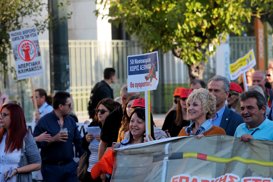 Οι εργαζόμενοι στα νοσοκομεία πραγματοποίησαν Πορεία Σωτηρίας της Δημόσιας Υγείας – Πρόνοιας και ΕΚΑΒ διαμαρτυρόμενοι για την επικείμενη ιδιωτικοποίηση της Δημόσιας Υγείας. «Αιτία πολέμου η Ιδιωτικοποίηση του ΕΣΥ», αναφέρουν σε ανακοίνωσή τους.