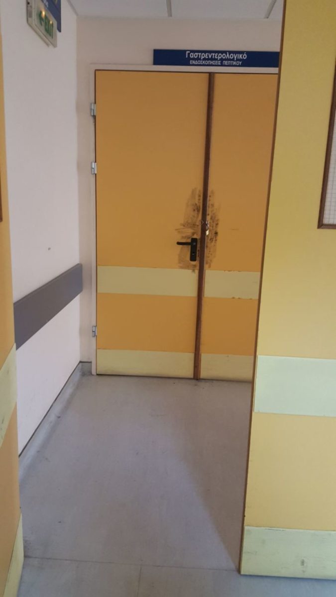 Δείτε φωτογραφίες της πόρτας του Γαστρεντερολογικού Εργαστηρίου που παραβιάστηκε».