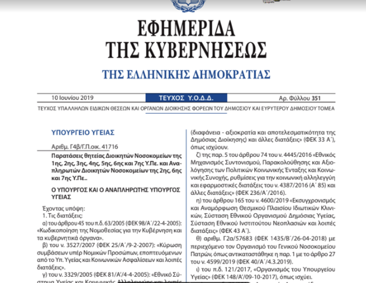 Δείτε την Υπουργική Απόφαση του αναπληρωτή Υπουργού Υγείας Π. Πολάκη που δημοσιεύθηκε στις 10 Ιουνίου 2019: