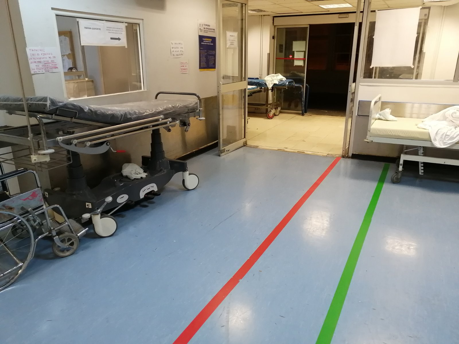 «Τα περιστατικά κορονοϊού -ύποπτα και διεγνωσμένα- εξετάζονται δίπλα στον ίδιο διάδρομο σε εξεταστήρια που χωρίζονται με καρέκλες μεταλλικές από τα εξεταστήρια των γενικών περιστατικών. Ο διάδρομος είναι γεμάτος ασθενείς. Ακριβώς μπροστά από τις καρέκλες είναι τα εξεταστήρια για καρδιολογικά, παθολογικά,πνευμονολογικά, χειρουργικά περιστατικά. Στην είσοδο των ΤΕΠ χωρίζουν με νάιλον το χώρο για περιστατικά κορονοϊού και τα γενικά περιστατικά που περιμένουν δεκάδες στην αναμονή. Επίσης έξω από τα ΤΕΠ περιμένουν πολλά ύποπτα περιστατικά σε πολύ κοντινή απόσταση. Συνεπώς υπάρχει τεράστιος κίνδυνος διασποράς του ιού μέσα στο νοσοκομείο», τονίζει ο κ. Γιαννάκος.