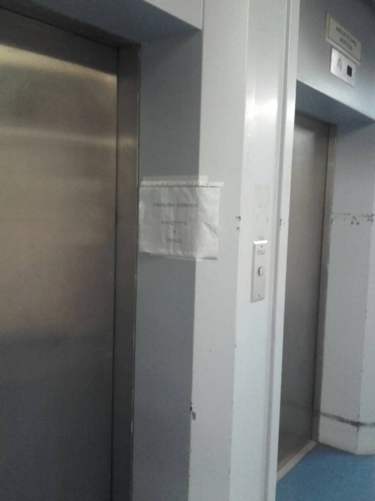 Τα ασανσέρ του Νοσοκομείου το τελευταίο ενάμιση χρόνο συνεχώς εμφανίζουν βλάβες.