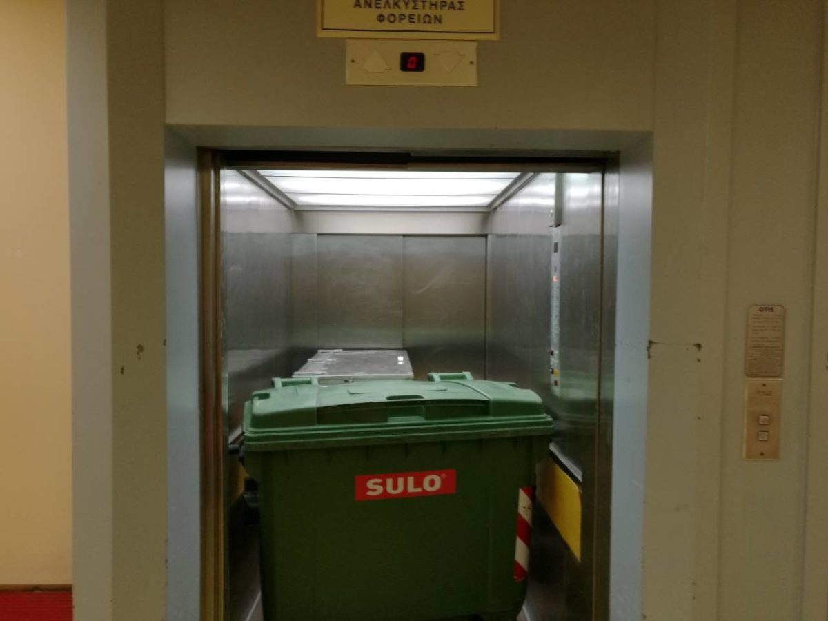 Δευτέρα 6/11/2017. Προσωπικό κλείστηκε στο ασανσέρ των φορείων το οποίο επί μισή ώρα πηγαινοερχόταν από τον τέταρτο όροφο στο υπόγειο. Κατατρόμαξαν. Φοβούνται πια να χρησιμοποιήσουν το ασανσέρ.