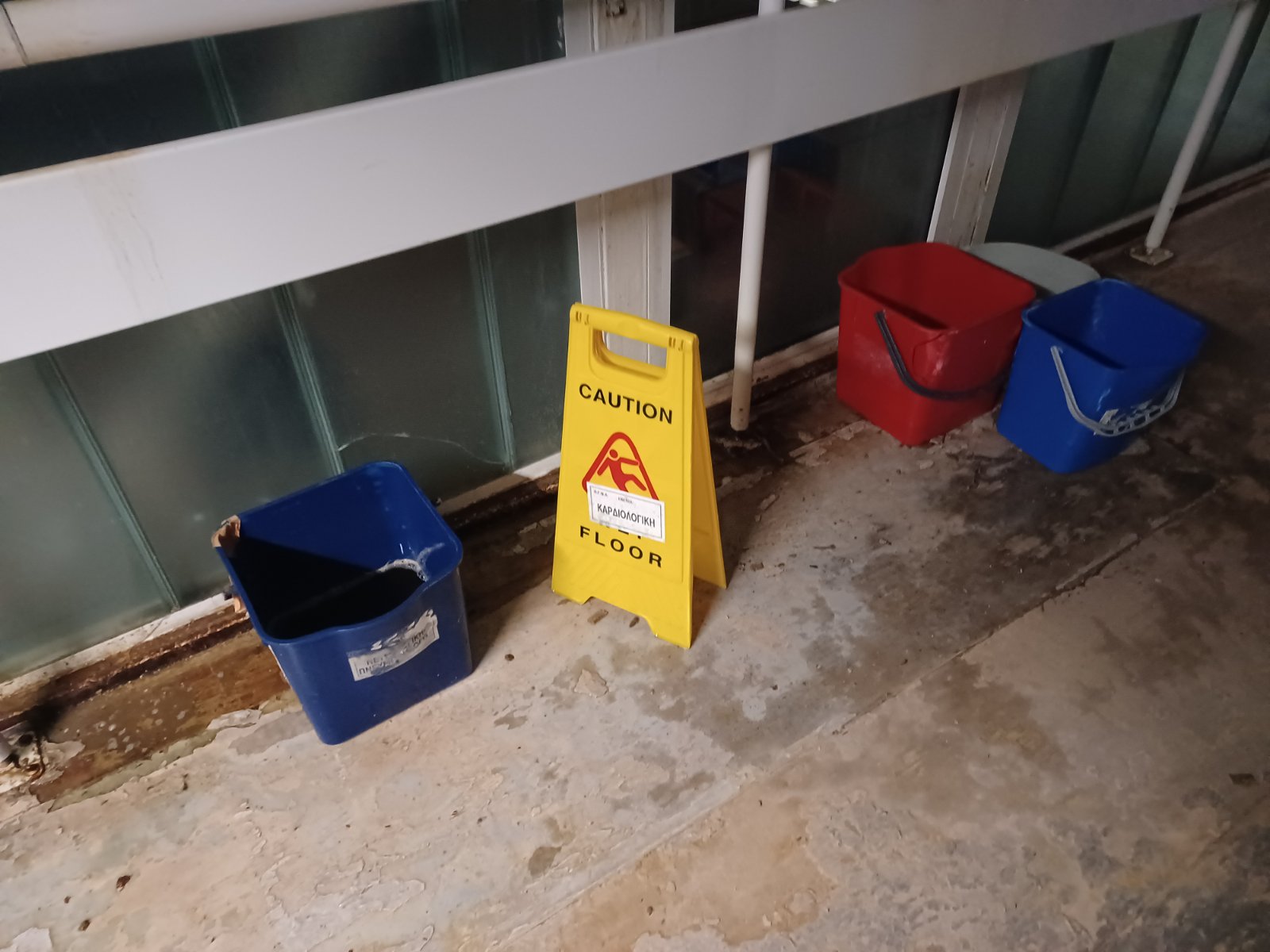 «Όπου πέφτουν νερά καταστρέφουν και τα πατώματα. Κουβάδες σε πολλά σημεία των νοσοκομείων σε διαδρόμους, εντός των θαλάμων ασθενών, τοποθετούνται για να πέφτουν τα νερά από τα ταβάνια. Παράθυρα που δεν κλείνουν στεγανά και μπάζουν νερά με τη βροχή».
