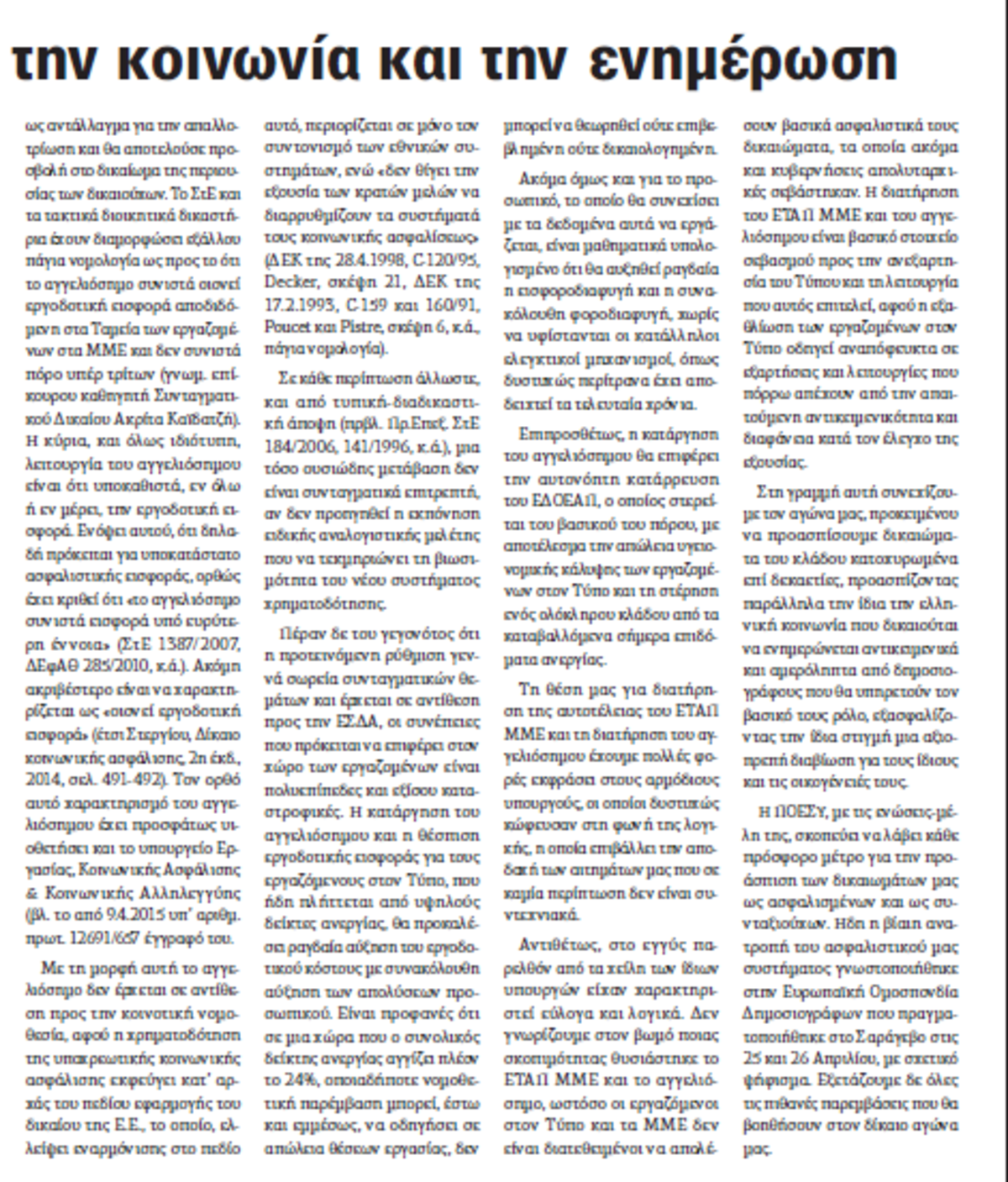 Για την βίαιη ανατροπή στο ασφαλιστικό σύστημα των Ελλήνων δημοσιογράφων