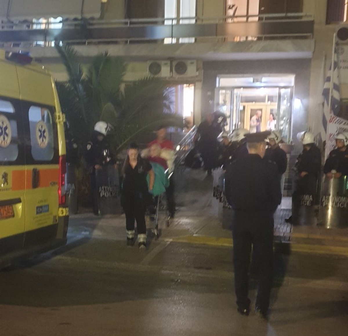 Δημιουργήθηκαν επεισόδια, εργαζόμενοι λιποθύμησαν, ενώ έντονες ήταν οι αποδοκιμασίες προς τους άνδρες της αστυνομίας που μετέφεραν τους ηλικιωμένους.