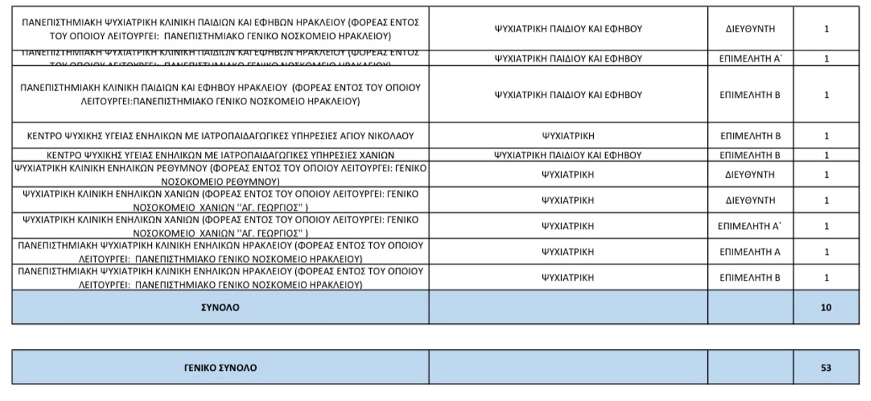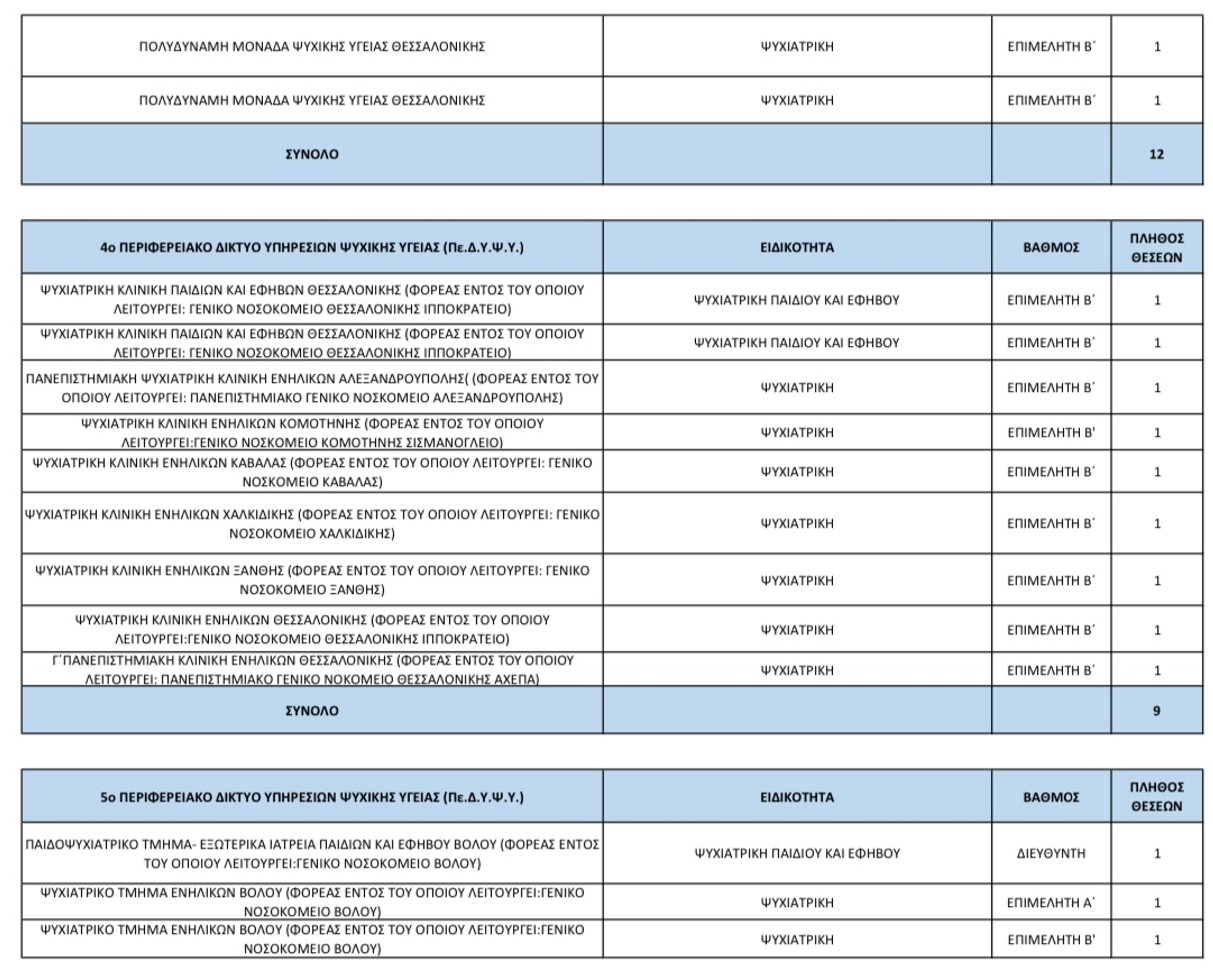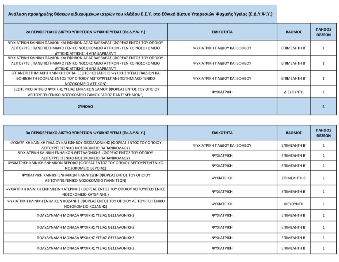Προσλήψεις ΕΣΥ: Στον «αέρα» η πρώτη προκήρυξη για 53 μόνιμους Ψυχίατρους και Παιδοψυχίατρους [πίνακας]