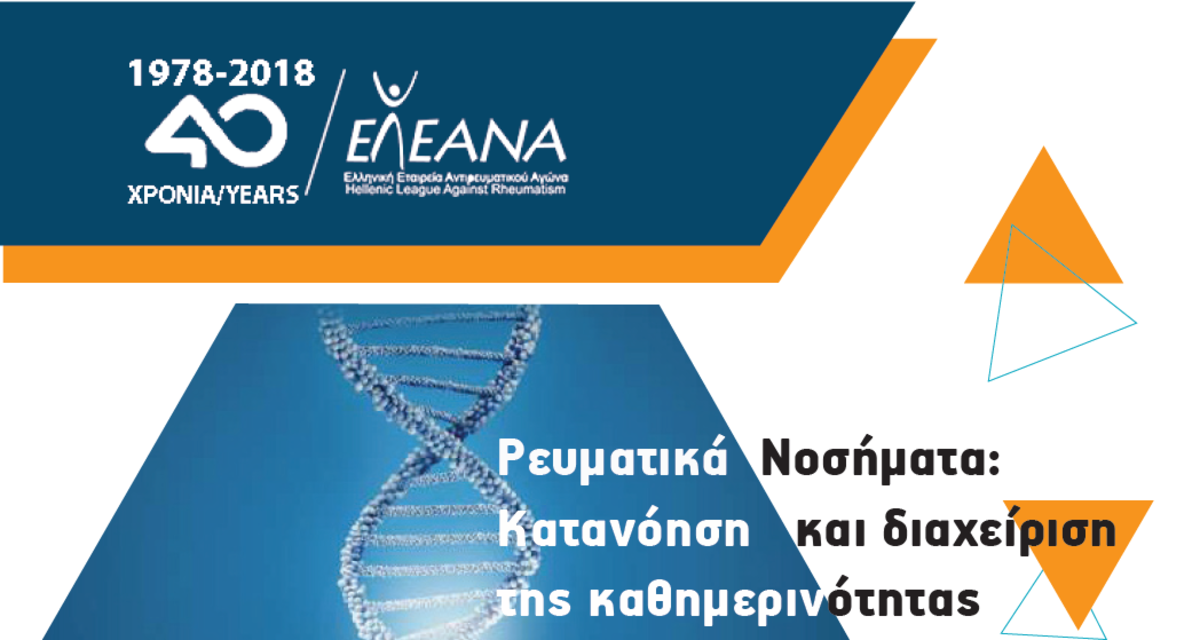 Το Σάββατο 20 Οκτωβρίου 2018 και ώρες 10:30-14:40 θα διεξαχθεί η εκδήλωση κατά την οποία ειδικοί ρευματολόγοι, ψυχίατροι, ψυχολόγοι, αναισθησιολόγοι και κλινικοί φαρμακολόγοι καθώς και ειδικοί Πληροφορικής & Ιατρικής Εκπαίδευσης θα προσπαθήσουν να εξηγήσουν και να προτείνουν λύσεις για την αποτελεσματική αντιμετώπιση του χρόνιου πόνου που υπομένουν οι ρευματοπαθείς και έχει ως αποτέλεσμα την κακή ποιότητα ζωής τους.