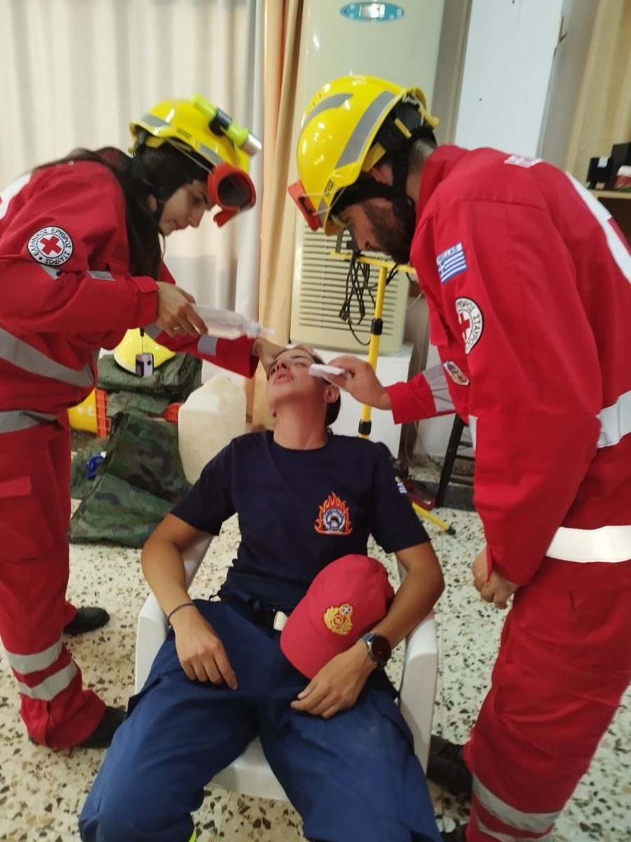 Σύσσωμο το Περιφερειακό Τμήμα του Ελληνικού Ερυθρού Σταυρού στην Ρόδο με τους εθελοντές του (Σαμαρείτες-Διασώστες, Υγείας, Κοινωνικής Πρόνοιας και Νεότητας) βρίσκεται από την πρώτη στιγμή στο πλευρό της Πυροσβεστικής Υπηρεσίας, προσφέροντας Πρωτοβάθμια Υγειονομική Περίθαλψη στους πυροσβέστες που αντιμετωπίζουν αναπνευστικά προβλήματα ή ελαφρά εγκαύματα από τη συνεχή μάχη με τις φλόγες.