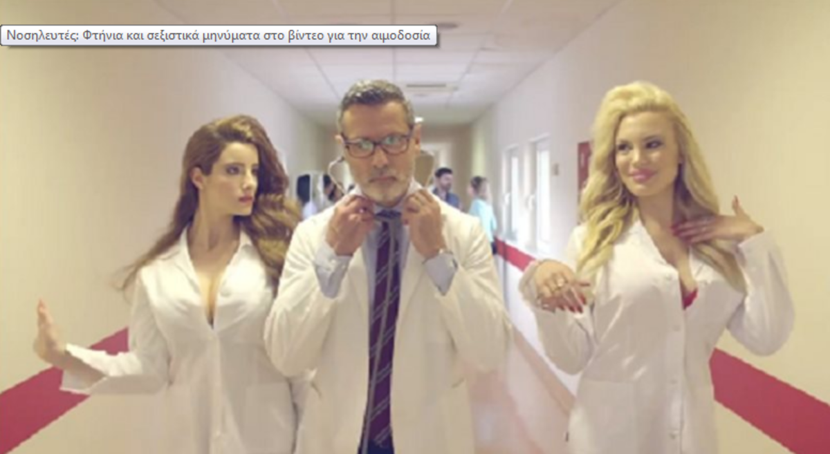 Μετά από πολύχρονους αγώνες για την άρση των διαφόρων στερεοτύπων και την επιστημονική καταξίωση του πολύπαθου χώρου των πτυχιούχων Νοσηλευτών- τριων, είναι αν μη τι άλλο αναχρονιστικό να εμφανίζονται εν έτει 2016, με εντολή και ευθύνη νομικού προσώπου δημοσίου δικαίου του χώρου της δημόσιας Υγείας (!!!) οι Νοσηλεύτριες ως όλως επικουρικού χαρακτήρα μέλη της ομάδας επαγγελματιών υγείας, χωρίς προσωπικότητα και ρόλο επαγγελματία υγείας, αλλά με προκλητική εμφάνιση και μοναδική αποστολή την «ανταμοιβή» του ήρωα Ιατρού για την επιτυχία του, με σαφή υπονοούμενα σεξουαλικής φύσης.
