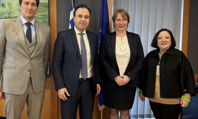 Συνάντηση εργασίας πραγματοποιήθηκε την Πέμπτη, 22 Φεβρουαρίου, στο Υπουργείο Ψηφιακής Διακυβέρνησης μεταξύ του υπουργού Δημήτρη Παπαστεργίου και της Εσθονής πρέσβη στην Ελλάδα Καρίν Ράνου.
