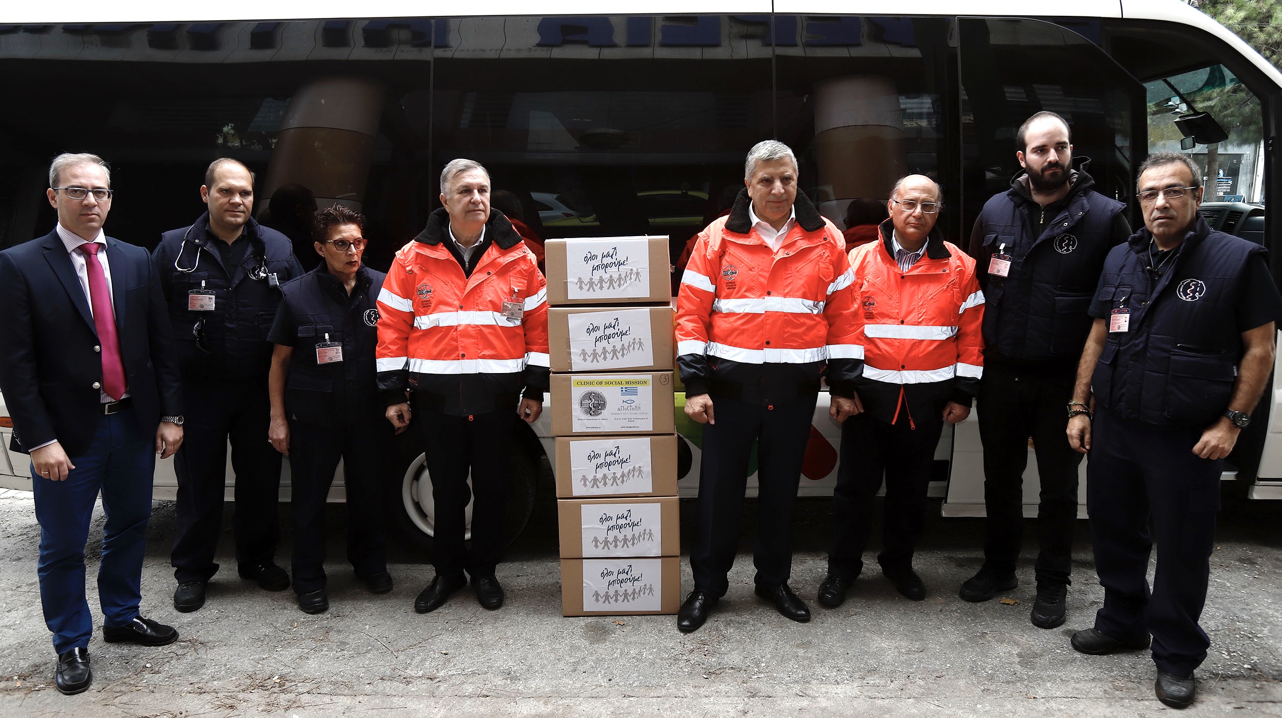 Μαζί τους μεταφέρουν υγειονομικό υλικό και φάρμακα που συγκεντρώθηκαν από το Ιατρείο Κοινωνικής Αποστολής του ΙΣΑ και του Φιλανθρωπικού Οργανισμού ΑΠΟΣΤΟΛΗ, της Ιεράς Αρχιεπισκοπής Αθηνών, στο πλαίσιο της δράσης «Όλοι Μαζί Μπορούμε» του ραδιοτηλεοπτικού Σταθμού ΣΚΑΪ .