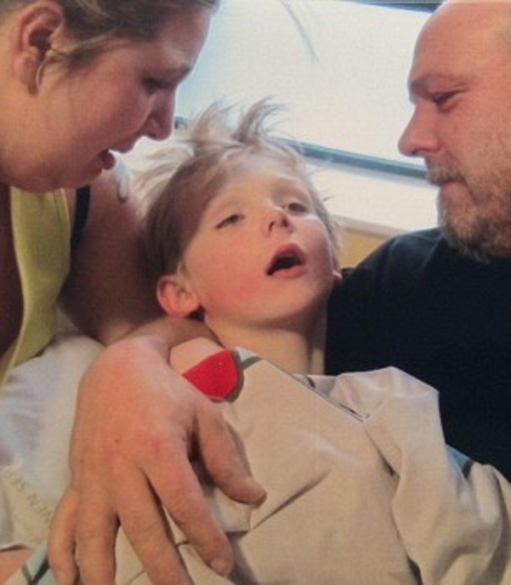 FERRARI PRESS AGENCY - 21/02/16 - Image of Mason Timmins, seven, his mum, Claire, 37, dad, Mark, 49. Mason's parents have released harrowing images of him after he died from meningitis to warn others to look for symptoms - SEE FERRARI COPY