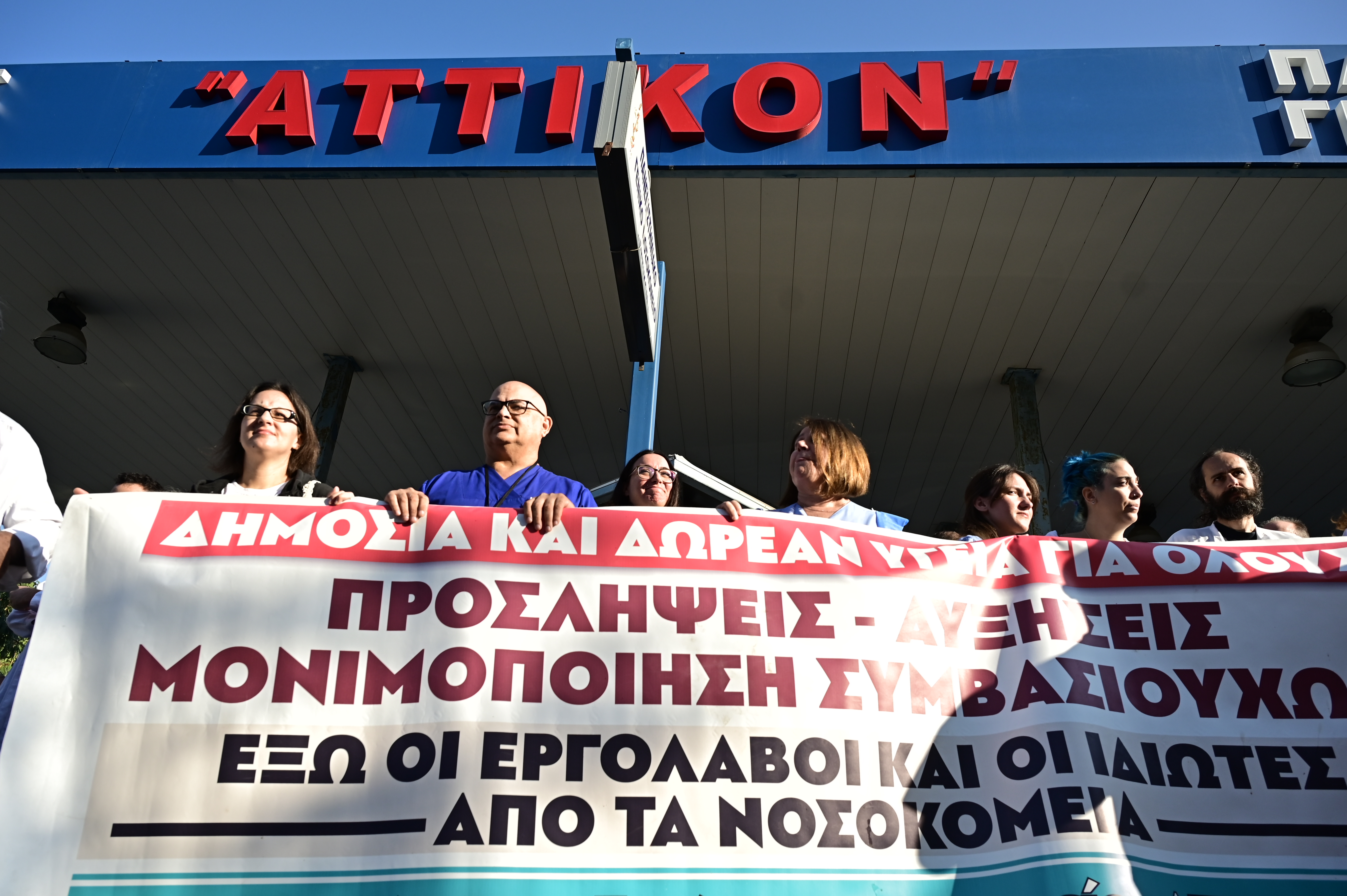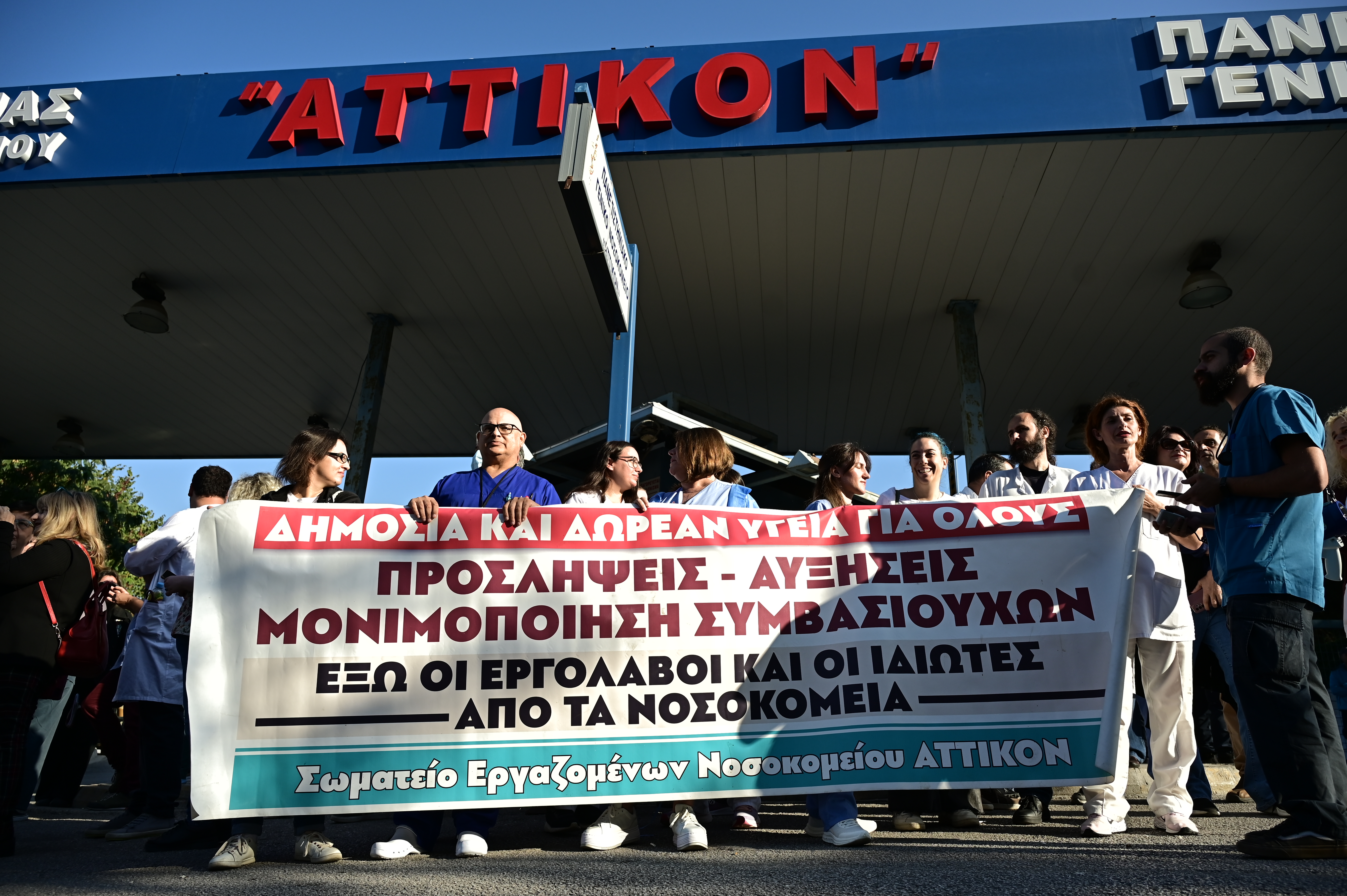Ωστόσο, οι εργαζόμενοι του νοσοκομείου Αττικόν είχαν προαναγγείλει ότι θα κάνουν συγκέντρωση διαμαρτυρίας κατά την επίσκεψη του κ.Μητσοτάκη.