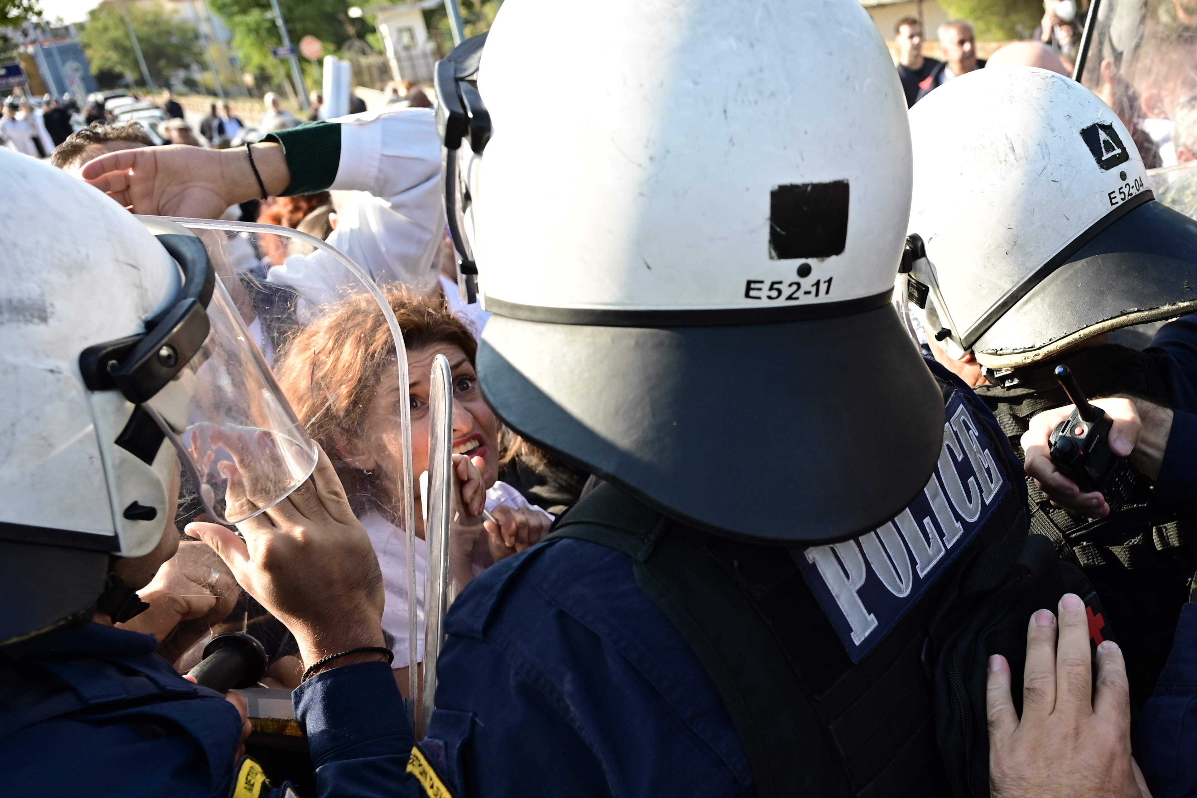 Μεγάλη ένταση επικράτησε σήμερα έξω από το νοσοκομείο «Αττικόν», ανάμεσα σε αστυνομικές δυνάμεις και εργαζομένους που διαμαρτύρονταν, την ώρα που πραγματοποιούσε επίσκεψη ο πρωθυπουργός Κυριάκος Μητσοτάκης, συνοδευόμενος από τον υπουργό Υγείας Άδωνι Γεωργιάδη.