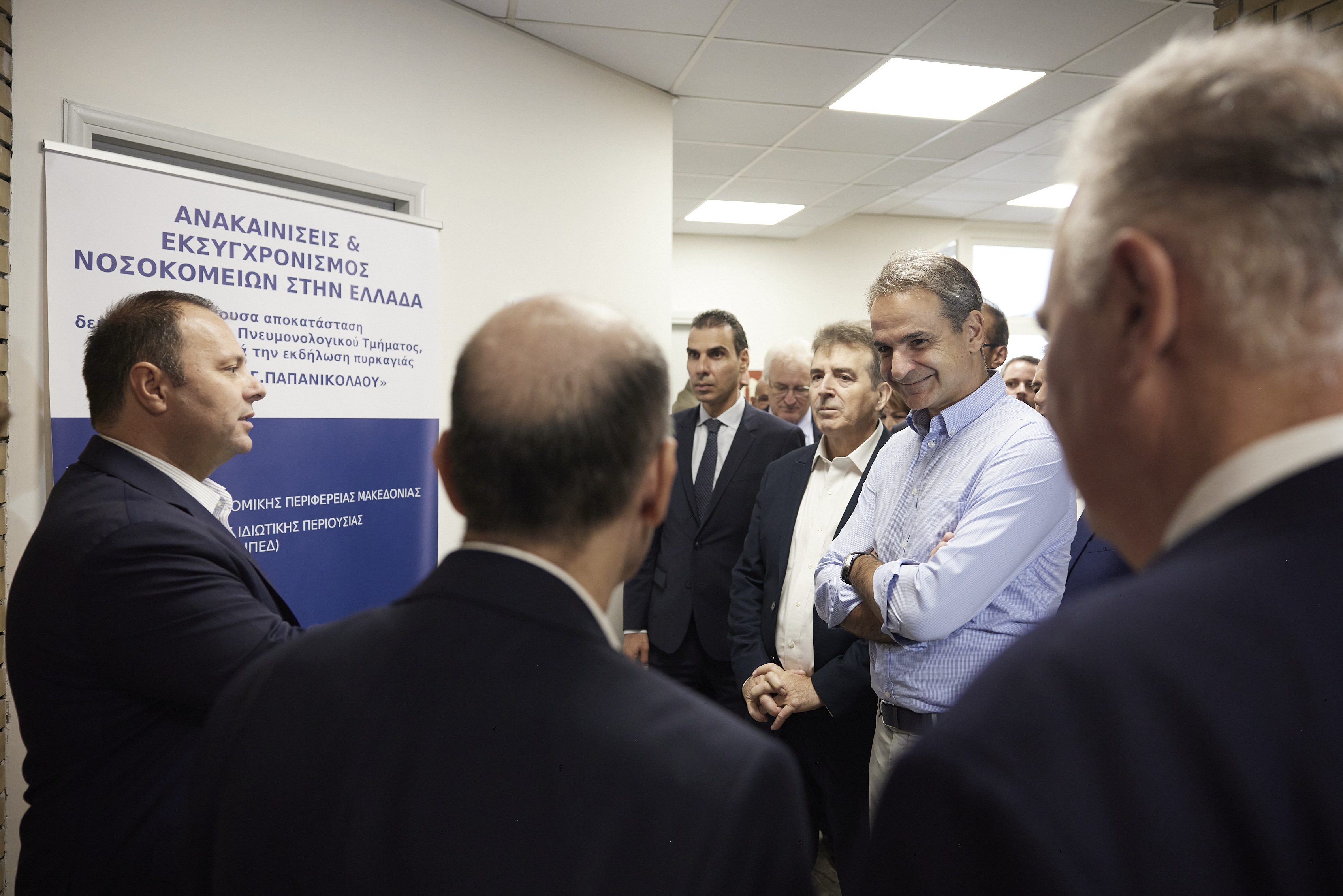 Ποιοτικότερες υπηρεσίες υγείας υποσχέθηκε ο πρωθυπουργός Κυριάκος Μητσοτάκης από τη Θεσσαλονίκη, κατά την ξενάγησή του στον δεύτερο όροφο της Πνευμονολογικής κλινικής του Νοσοκομείου «Παπανικολάου», που είχε καταστραφεί ολοσχερώς από πυρκαγιά πέρυσι.