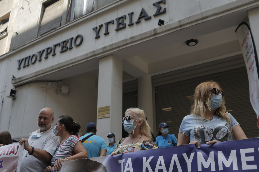 Ενωμεταξύ, το αίτημα των εργαζομένων που κυριάρχησε στη συγκέντρωση έξω από το Υπουργείο Υγείας ήταν «κανένας εργαζόμενος να μη χάσει τη δουλειά του». Η Πανελλήνια Ομοσπονδία Εργαζομένων στα Δημόσια Νοσοκομεία (ΠΟΕΔΗΝ) πραγματοποιεί κινητοποιήσεις σε όλη την Ελλάδα, αντιδρώντας στην υποχρεωτικότητα των εμβολιασμών και την αναστολή καθηκόντων για ανεμβολίαστους επαγγελματίες υγείας.
