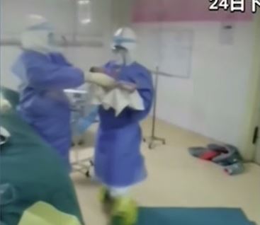 Ο γιατρός ονόματι Ζάο Γιν, υποδιευθυντής του τμήματος Μαιευτικής και Γυναικολογίας στο Νοσοκομείο Wuhan Union, φορούσε δύο προστατευτικές στολές, μια χειρουργική μάσκα και ειδικά γυαλιά στη διάρκεια της επέμβασης που διήρκεσε μια ώρα.