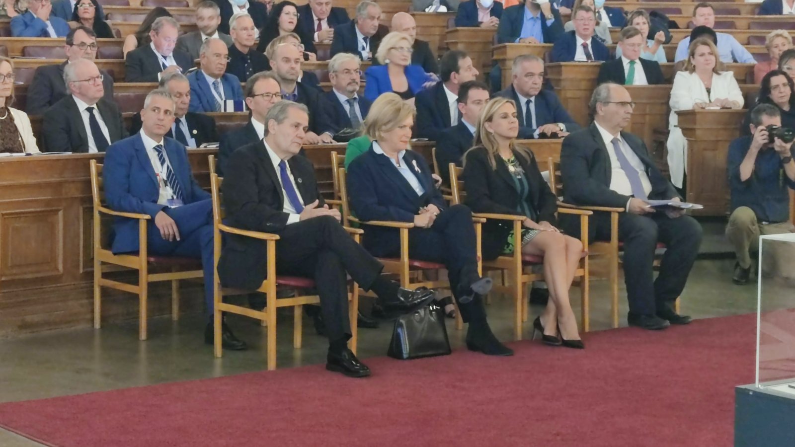 Κατά τη διάρκεια της ειδικής εκδήλωσης στην Παλαιά Βουλή ο Πρόεδρος του Πανελλήνιου Ιατρικού Συλλόγου κ. Αθανάσιος Εξαδάκτυλος απένειμε ειδική τιμητική διάκριση στον Έλληνα Πρόεδρο της U.E.M.S. κ.Βασίλειο Παπαλόη, Καθηγητή Χειρουργικής Μεταμοσχεύσεων στο Imperial College του Λονδίνου, ο οποίος διαπρέπει επί σειρά ετών εκτός ελληνικών συνόρων.