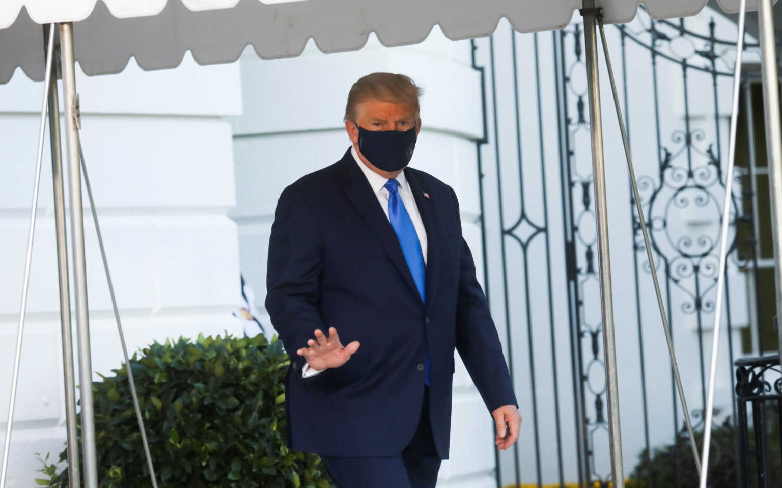Εντωμεταξύ, αν και ο Τραμπ δεν αποδέχεται τα προληπτικά μέτρα, όπως είναι η μάσκα, εξερχόμενος από τον Λευκό Οίκο και στο δρόμο για στρατιωτικό νοσοκομείο, φορούσε μια μαύρη προστατευτική μάσκα, για να μη διαδώσει τη λοίμωξη σε άλλους ανθρώπους.