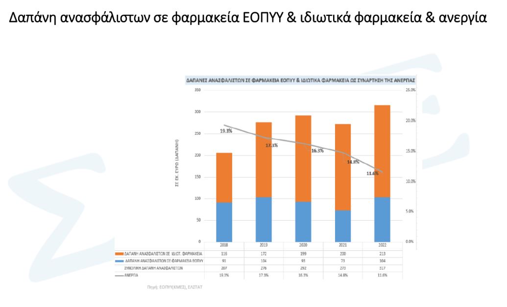Σύμφωνα με τους αριθμούς, το ποσοστό ανεργίας το 2018 ανερχόταν στο 19,3% και μειώθηκε στο 11,6% το 2022, ενώ κατά τα δύο ίδια διαστήματα, η φαρμακευτική δαπάνη για τους άνεργους πολίτες αυξήθηκε από τα 207 εκατ. ευρώ ετησίως στα 317 εκατ. ευρώ, αντίστοιχα.