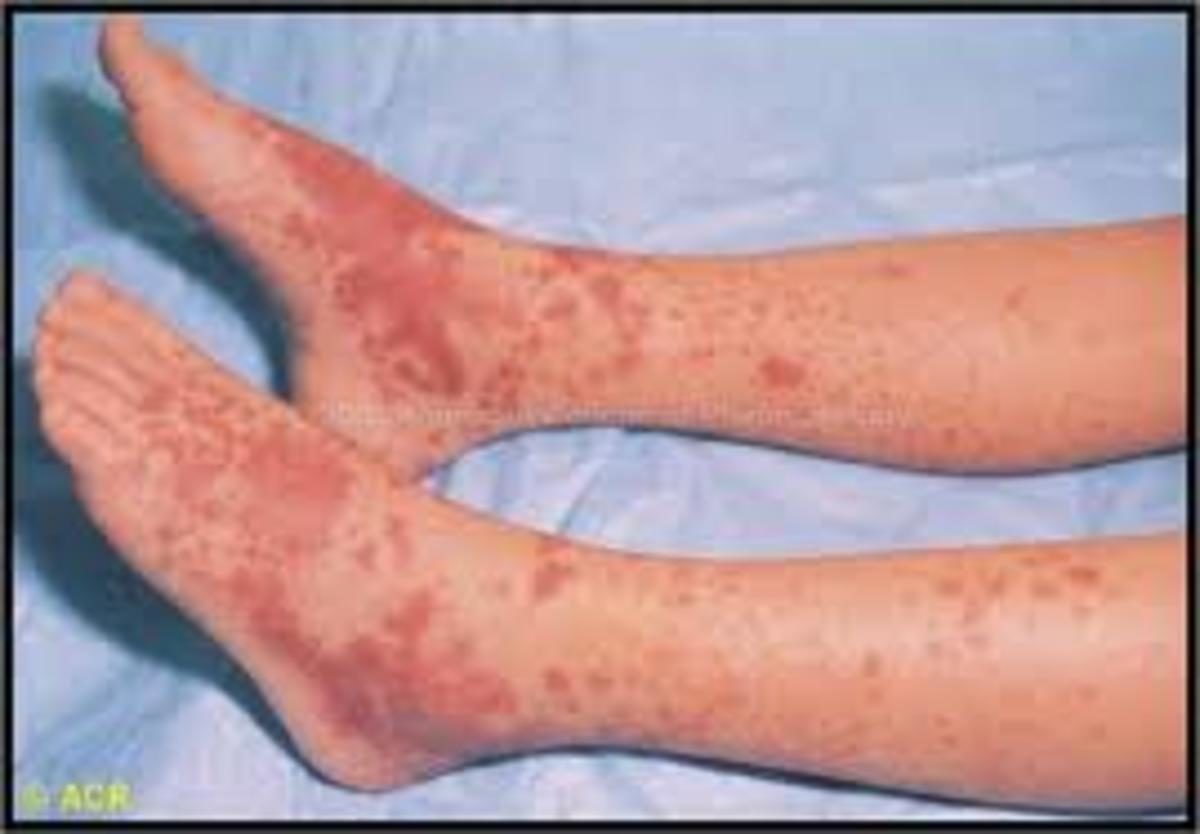 Στη συνέχεια εμφανίζεται ένα εξάνθημα πιο συχνά στα πόδια, τους γλουτούς, τους αγκώνες και γύρω από τη μέση. Το εξάνθημα διαρκεί συνήθως περίπου 10 ημέρες μέχρι να εξαφανιστεί. Αρκετά μεγάλο ποσοστό θα αναπτύξει και φλεγμονή των αρθρώσεων. Οι αρθρώσεις, ιδιαίτερα τα γόνατα και οι αστράγαλοι, μπορεί να πρηστούν, να είναι ζεστές και επώδυνες. Η φλεγμονή σταδιακά θα υποχωρήσει και δε θα αφήσει μόνιμη βλάβη στις αρθρώσεις. Τα περισσότερα αλλά όχι όλα τα άτομα με πορφύρα Henoch-Schönlein θα εκδηλώσουν έντονο πόνο στην κοιλιά. Μερικοί μπορεί επίσης να εμφανίσουν αδιαθεσία, εμετό και διάρροια.