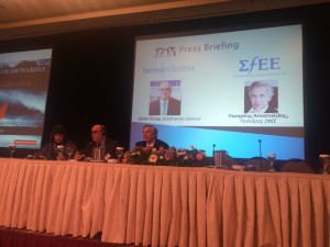 Παίρνοντας τον λόγο ο πρόεδρός του ΣΦΕΕ, Πασχάλης Αποστολίδης, είπε ότι «εμείς μπορούμε να τριπλασιάσουμε τις κλινικές μελέτες μέσα σε 2-3 χρόνια και με τον τρόπο αυτό να καλύψουμε το 40% του κόστους για το νοσοκομειακό φάρμακο». Και πρόσθεσε ότι μία μόνο κλινική μελέτη φέρνει 250 εκατ. ευρώ (με τελική επίπτωση τα 500 εκατ. ευρώ).
